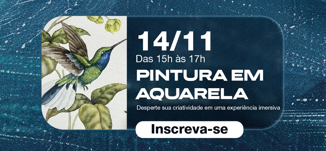 Desperte sua criatividade em uma experiência imersiva de pintura em aquarela, onde você aprenderá a técnica da aquarela com todo o suporte necessário para criar sua obra de arte única.