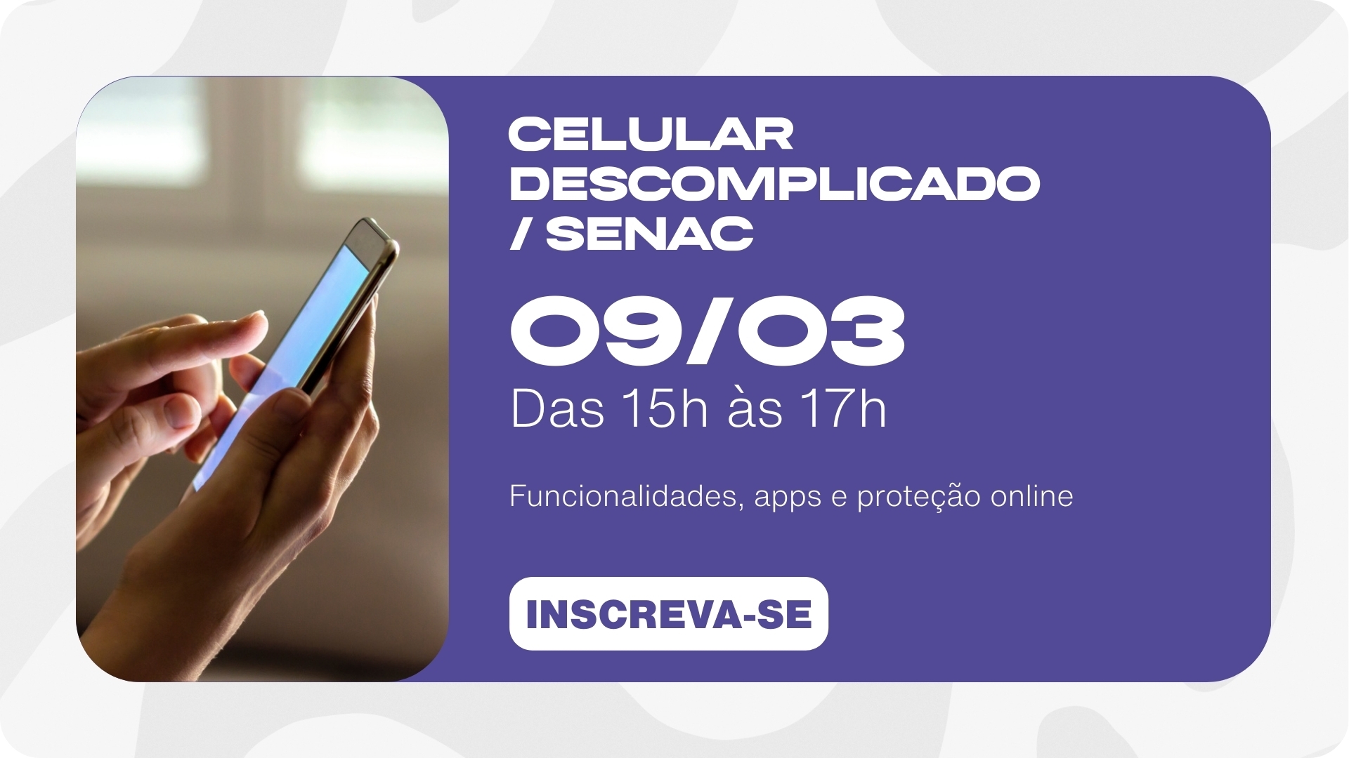 O Shopping Jardim das Américas, em parceria com o SENAC, promove a oficina Celular Descomplicado: funcionalidades, app e proteção online, uma atividade pensada para quem deseja utilizar o smartphone com mais segurança e praticidade no dia a dia.