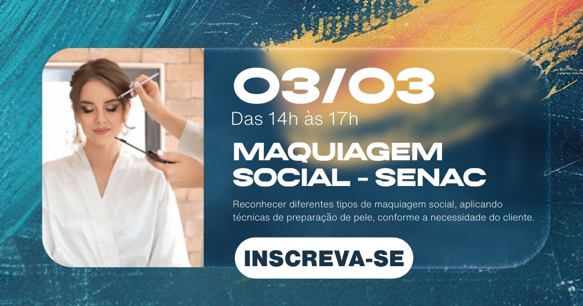 Durante a atividade, os participantes irão reconhecer diferentes estilos de maquiagem social e aprender, na prática, técnicas de preparação de pele, escolha de produtos e aplicação adequada conforme as necessidades de cada pessoa. A oficina será conduzida por profissionais do Senac, instituição referência em qualificação profissional.
